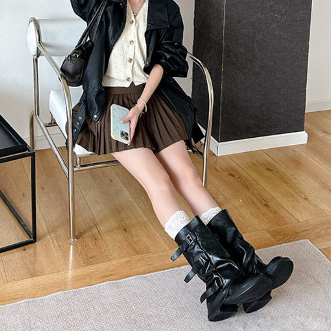 【カラー】 ブラック 【サイズ】 35.36.37.38.39.40 筒丈:約27cm ヒール高さ:約6cm 履き口周り:約34.5cm 【お届けについて】 こちらの商品は海外店舗より直接発送となる為、 ご入金から10日~21日前後でお届け致します。 ◼️注意事項 ・タイミングによっては 商品在庫切れにより 注文キャンセルとさせていただく恐れもございますので、予めご了承くださいませ。 ・こちらは輸入品となります。日本製とは検品基準が異なる為、 新品未使用品でもごくわずかな汚れや傷がある場合もございます。 ・商品の色味は、お手持ちのスマートフォンの画面によって実物と若干異なる場合がございます。 ・イメージ違いやサイズ交換等、お客さまご都合による交換、返品は対応出来かねます。 ———————————— ご購入前にこちらをお読みください https://meliashop45.base.shop/about ————————————